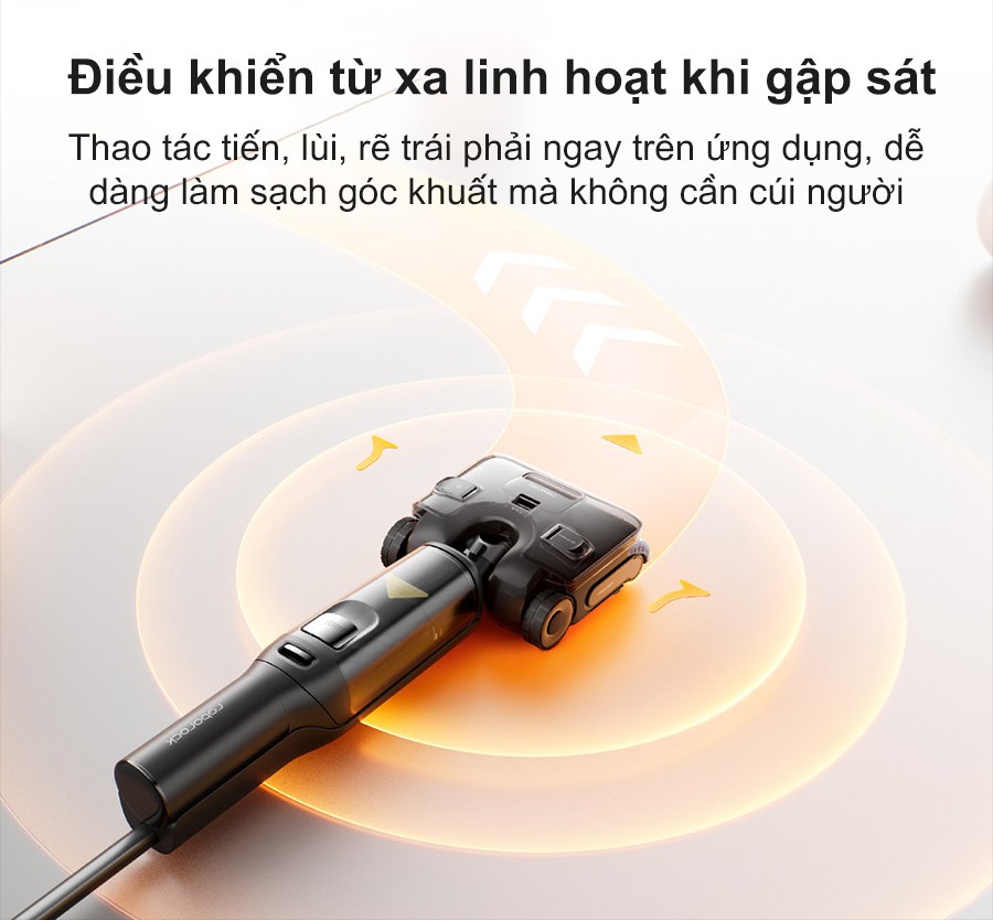 Một điểm nổi bật đáng chú ý trên Roborock F25 Ultra là thiết kế con lăn tràn viền hai bên. Nhờ khả năng tiếp cận sát mép tường tới 0mm, thiết bị dễ dàng quét sạch bụi bẩn bám dọc theo chân tường và các khu vực mà những máy hút bụi thông thường thường bỏ sót. Tính năng này đặc biệt hữu ích trong việc làm sạch chân tường, góc tủ hoặc khu vực quanh chân bàn ghế.