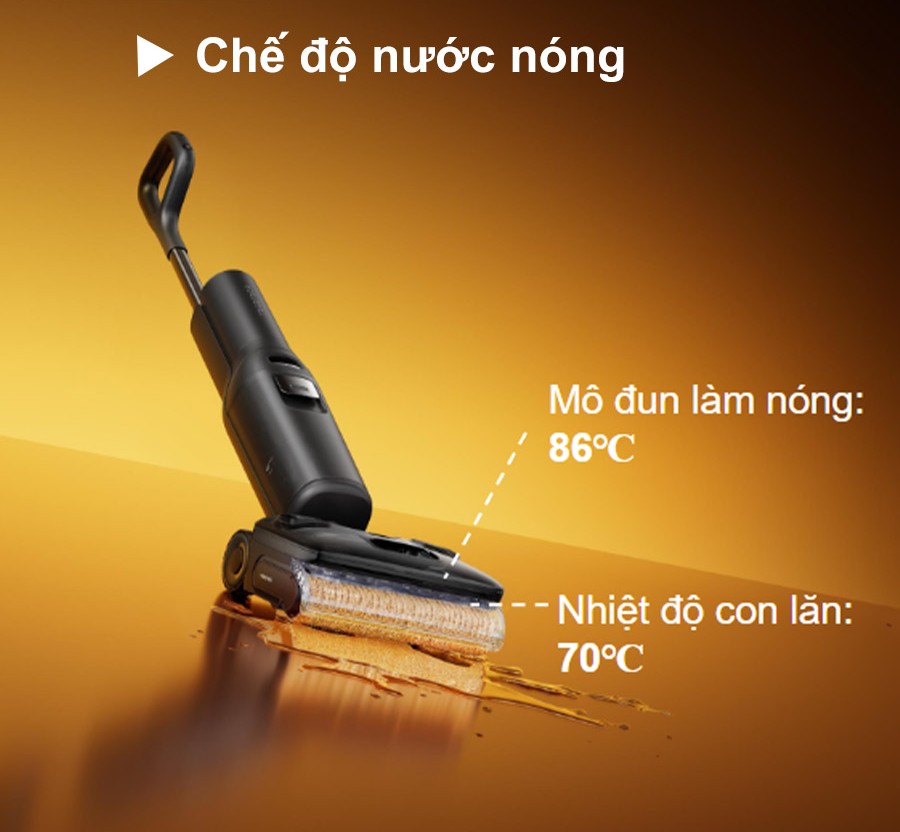 Máy hút bụi lau nhà Roborock F25 Ultra tích hợp chế độ làm sạch bằng nước nóng với mức nhiệt tiêu chuẩn không thấp hơn 86°C, mang lại khả năng làm sạch vượt trội. Người dùng có thể cảm nhận rõ rệt con lăn trở nên ấm lên ngay trong quá trình vận hành, một minh chứng cho hiệu quả nhiệt độ trong việc đánh bật vết bẩn cứng đầu. Đặc biệt, con lăn có thể đạt mức nhiệt độ cao chỉ trong vòng 30 giây sau khi máy được khởi động, tiết kiệm thời gian đáng kể.