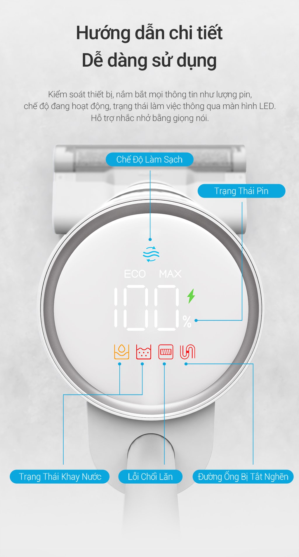Sau khi dọn dẹp xong, bạn có thể kích hoạt chế độ tự làm sạch bằng một nút bấm, rất đơn giản, thuận tiện và không cần dùng tay. Tính năng này giúp bạn rút gọn quá trình vệ sinh thủ công rườm rà trước đây, kích hoạt tính năng tự làm sạch bằng một nút và vệ sinh sạch sẽ hoàn toàn chổi lăn và ống hút.
