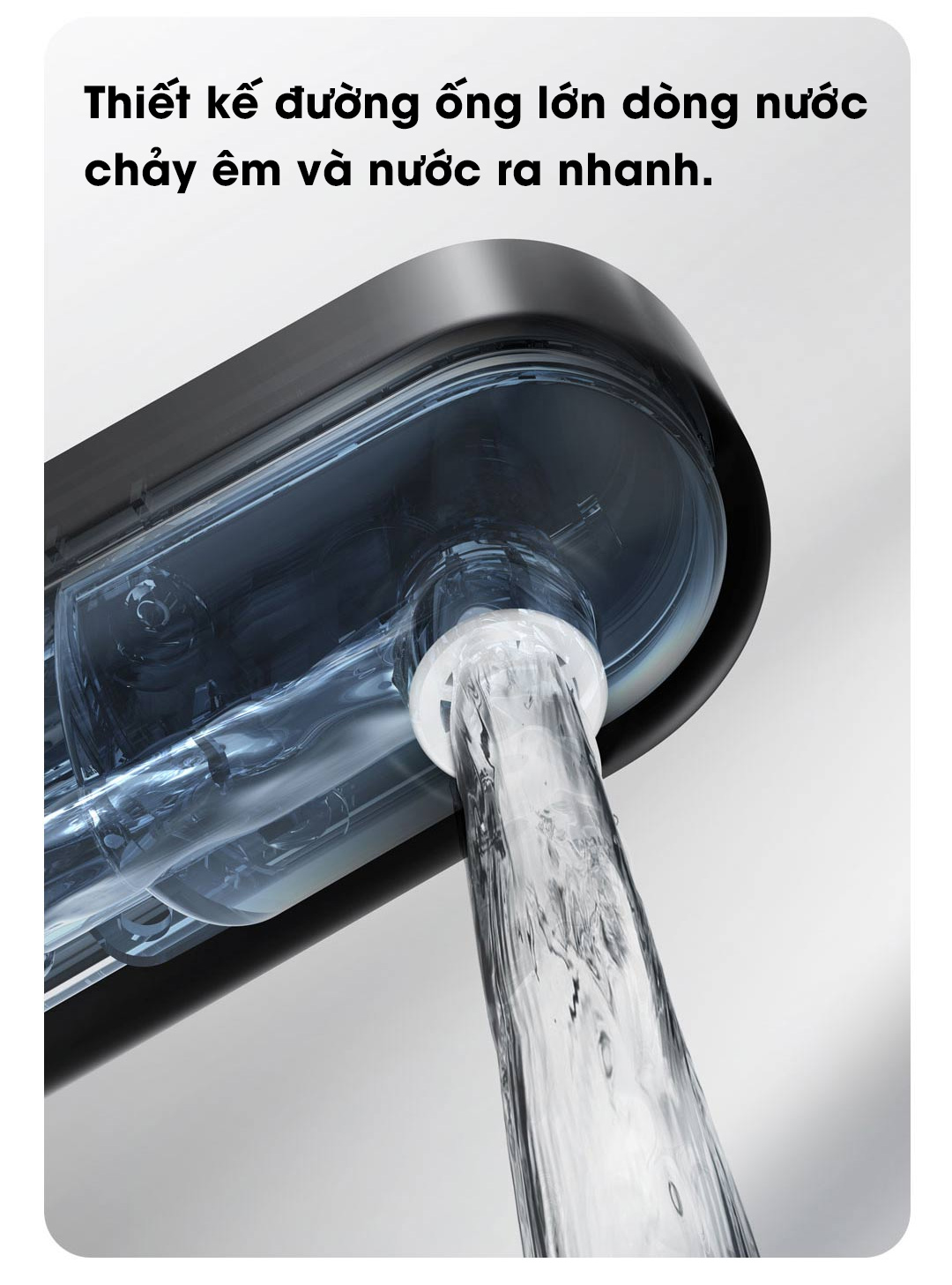 Thiết kế đường ống lớn của vòi Xiaomi Mijia 1000G Pro không chỉ đẹp mắt mà còn giảm sốc và có đường kính lớn, giúp dòng nước chảy êm và ít nước thất thoát hơn. Đồng thời, việc cung cấp nước trở nên nhanh chóng hơn, không cần phải chờ đợi lâu.