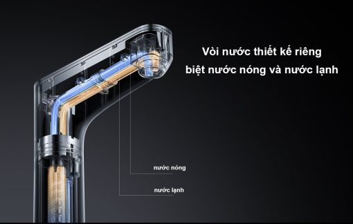 Vòi nước này được thiết kế với 2 đường ống nước tách rời, phân biệt nước nóng và nước lạnh. Cụ thể, nước ở nhiệt độ bình thường và nước nóng sẽ được phân tách riêng nên sẽ không bị trộn lẫn vào nhau, đảm bảo chất lượng nước và bảo vệ hệ tiêu hóa cho người dùng khi sử dụng nước.