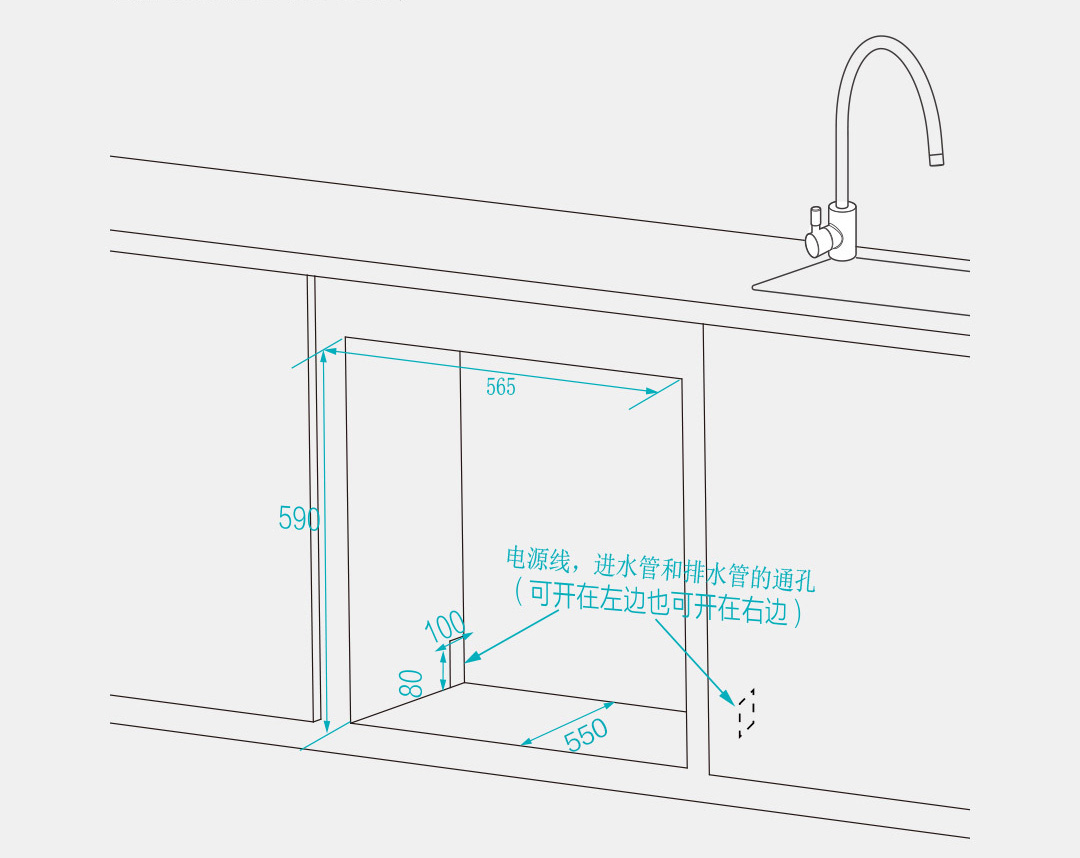 - Kích thước mở: chiều rộng 565 x chiều cao 590 x chiều dài 550mm