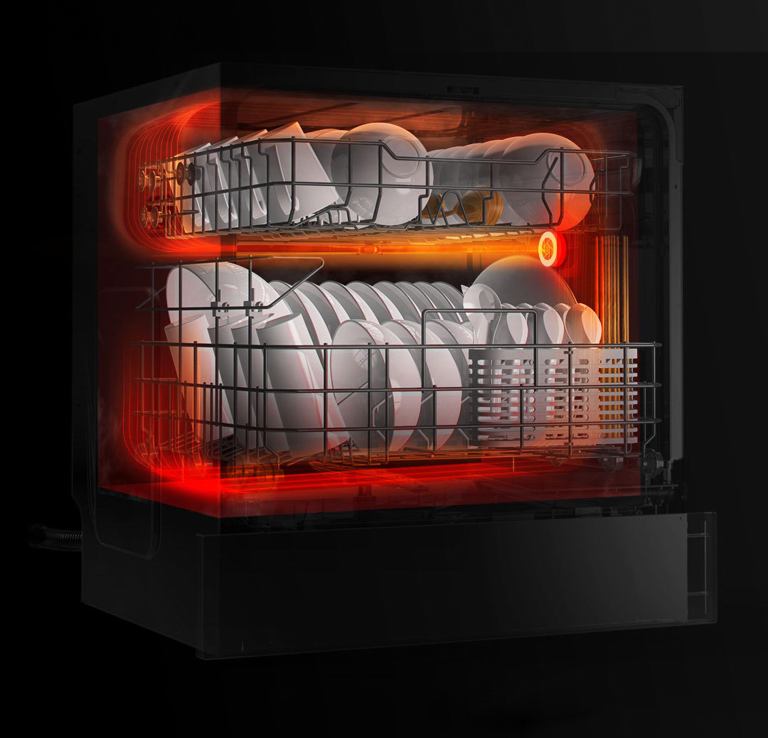 Không những vậy, hệ thống sưởi nhiệt PTC bên trong máy rửa chén bát tự động Viomi Xiaomi còn có khả năng đẩy nền nhiệt trong máy lên chính xác 70oC để làm bốc hơi nước và sấy khô khử trùng đến 99,99% vi khuẩn. Hệ thống sấy của máy sẽ loại bỏ hoàn toàn quá trình sinh sôi của vi khuẩn và làm sạch không gian bên trong máy. Ngoài khử trùng cho chén dĩa, bạn có thể khử trùng cho các vật dụng chăm sóc trẻ để đảm bảo không có bất cứ vi khuẩn gây bệnh nào xuất hiện trên những đồ dùng này.