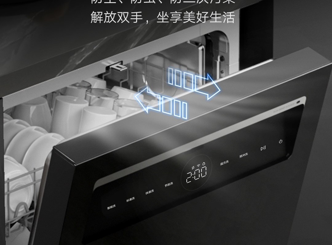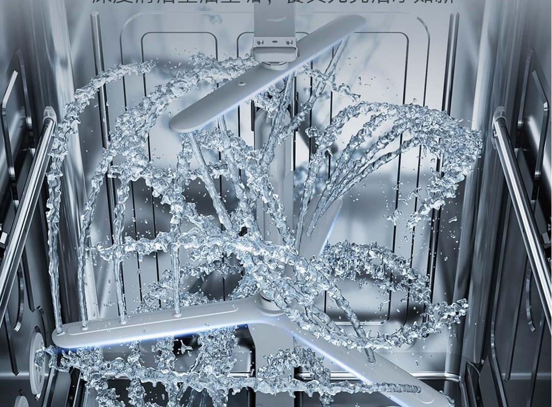 Sản phẩm mới Mijia N1 rửa bát 16 bộ được tích hợp một cánh tay phun ba vòng quay, có thể giải phóng 44 tia nước mạnh ở nhiệt độ cao và ứng suất cao cùng lúc