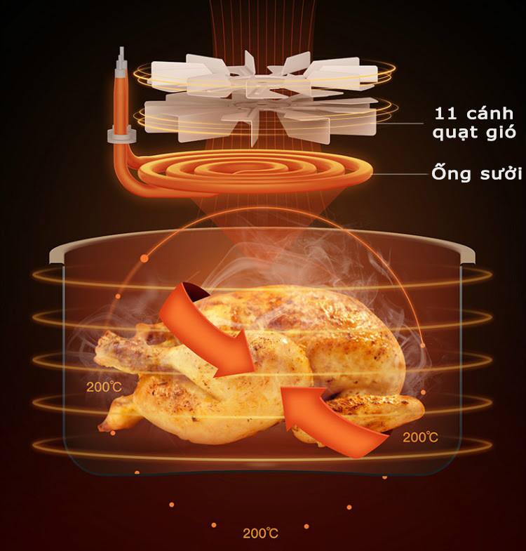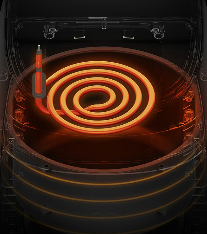 Tương tự như những Nồi chiên không dầu Xiaomi Deerma Deerma khác trên thị trường, Deerma DEM-KZ100 cũng sử dụng công nghệ làm chín thức ăn bằng khí nóng tốc độ cao mà không cần dùng đến dầu ăn, đảm bảo an toàn cho sức khỏe người dùng. Cụ thể, sản phẩm hoạt động dựa trên sự chuyển động của 11 cánh quạt xoắn ốc, hỗ trợ tạo ra luồng khí nóng tuần hoàn với công suất lên đến 1000W giúp làm chín đều thức ăn ở mọi mặt, mang đến độ vàng giòn đẹp mắt bên ngoài và mềm mịn, thơm ngon bên trong cho món ăn.