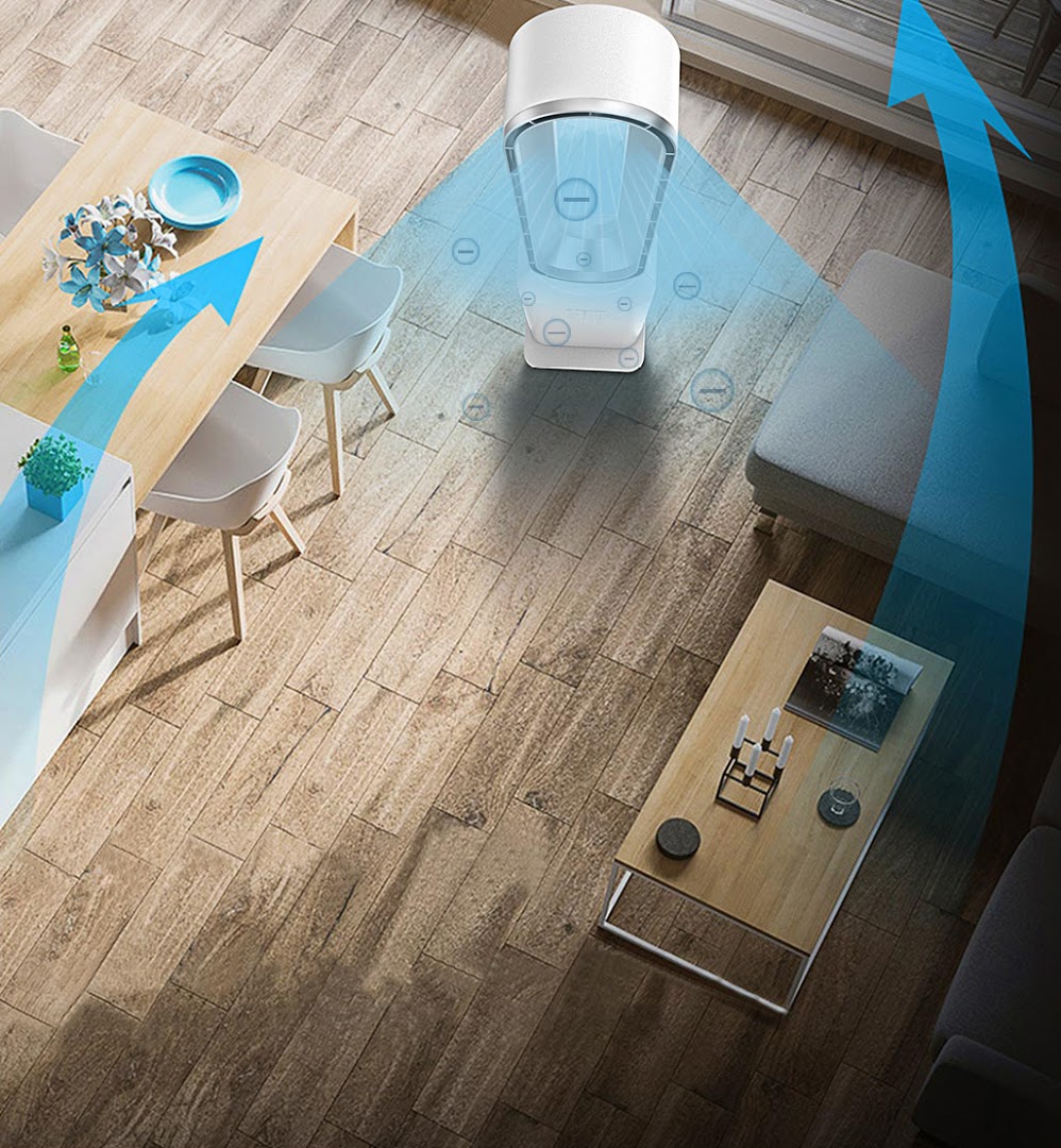 Điểm độc đáo của quạt không cánh Westinghouse đó là được trang bị khả năng cung cấp không khí với góc rộng 120º, cho khả năng làm mát ở diện rộng, không góc chết, giúp lưu thông làn khí khắp ngôi nhà.