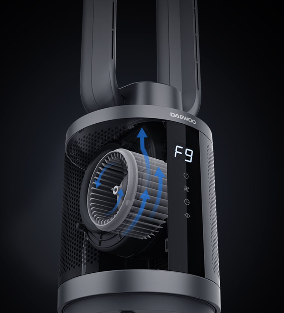 Quạt không cánh DAEWOO F9 MAX NEW MODE 2021 một trang bị hiện đại giúp cải thiện chất lượng không khí, mang đến luồng gió mát tự nhiên, liên tục cho không gian gia đình bạn.