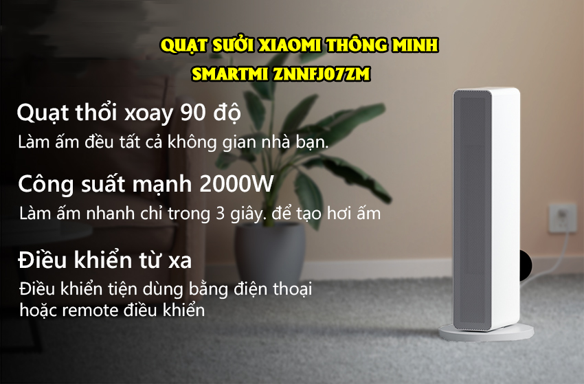 Quạt sưởi Xiaomi thông minh Smartmi ZNNFJ07ZM khác biệt so với các máy sưởi khác là việc làm ấm chủ động hơn với thiết kế quạt thổi hơi ấm cùng với khả năng xoay góc rộng 90o. Tạo điều kiện cho nhiệt tản đều và nhanh tới mọi khu vực trong không gian trong nhà bạn.