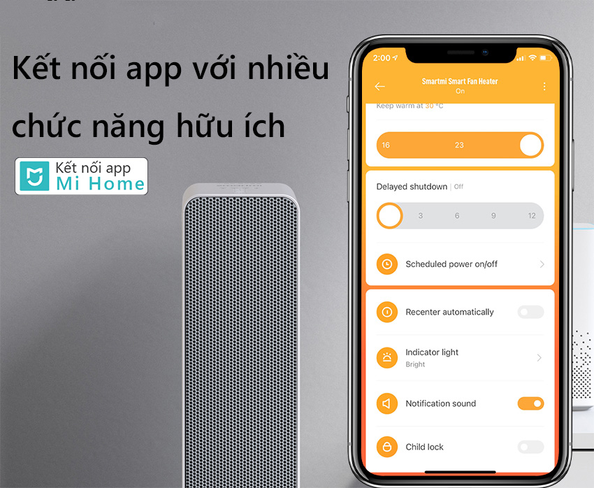 Người dùng có thể kết nối với App Mi Home tải trên kho ứng dụng. Tạo tài khoản là hoàn toàn có thể điều khiển từ xa ở bất cứ nơi đâu. Trước khi bạn về nhà khoảng 15 phút, bạn chỉ cần mở app và khởi động để chúng hoạt động an toàn. Về tới nhà cũng là lúc, thành quả từ máy sưởi một không gian ấm áp giành cho gia đình bạn. Đặc biệt với kết nối app bạn có thể cài đặt nhiệt độ làm ấm chính xác theo nhu cầu của mình(Tối đa là 30o ), và bật tính năng duy trì một nhiệt độ nhất định giúp cho căn phòng luôn luôn được giữ ấm ở mức nhiệt độ phù hợp với bạn