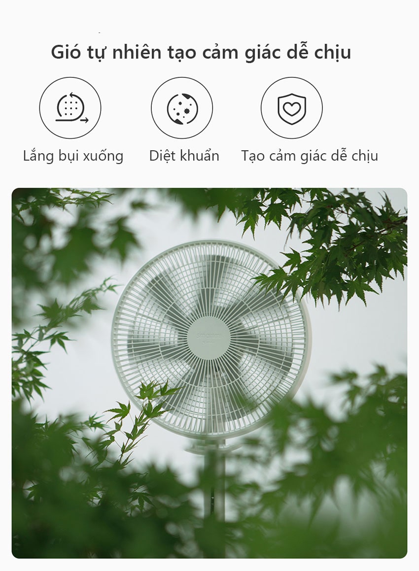 Theo nghiên cứu của các chuyên gia hàng đầu, gió tự nhiên là luồng gió có chất lượng tốt nhất, đem đến cảm giác thư thái, dễ chịu sảng khoái, giúp cơ thể thư giãn. Quạt Xiaomi Smartmi Fan Gen 3 được sử dụng thuật toán chính xác, tạo ra luồng gió tự nhiên, xua tan bầu không khí oi nóng, ngột ngạt, nhất là trong thời tiết mùa hè hay trong phòng điều hòa kín. Đặc biệt hơn nữa, khi quạt hoạt động còn tạo ra các ion âm, giúp khử mùi hiệu quả, diệt vi khuẩn và nấm mốc, bảo vệ an toàn hệ hô hấp các thành viên trong gia đình bạn.