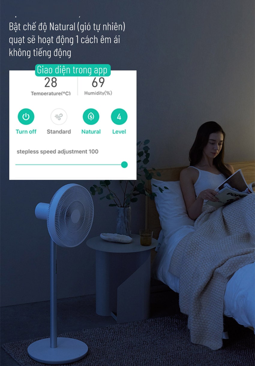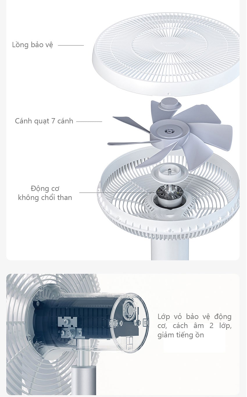 Quạt Điện Thông Minh Xiaomi Smartmi Fan Gen 3 có thiết kế sử dụng động cơ không chổi than DC công nghệ hiện đại nhất hiện nay đến từ Nhật Bản. Ưu điểm nổi bật của động cơ này là hoạt động ổn định, bền bỉ, độ ồn cực thấp, tiết kiệm đáng kể điện năng. Ngoài ra, lớp vỏ bảo vệ động cơ được cách âm 2 lớp, có tác dụng giảm tiếng ồn xuống mức thấp nhất. Ở cấp độ gió thấp và trung bình, gần như tai người không thể nghe thấy âm thanh khi quạt hoạt động, bảo vệ không gian yên tĩnh của bạn giúp bạn tập trung làm việc, thư giãn hoặc dễ dàng đi vào giấc ngủ.