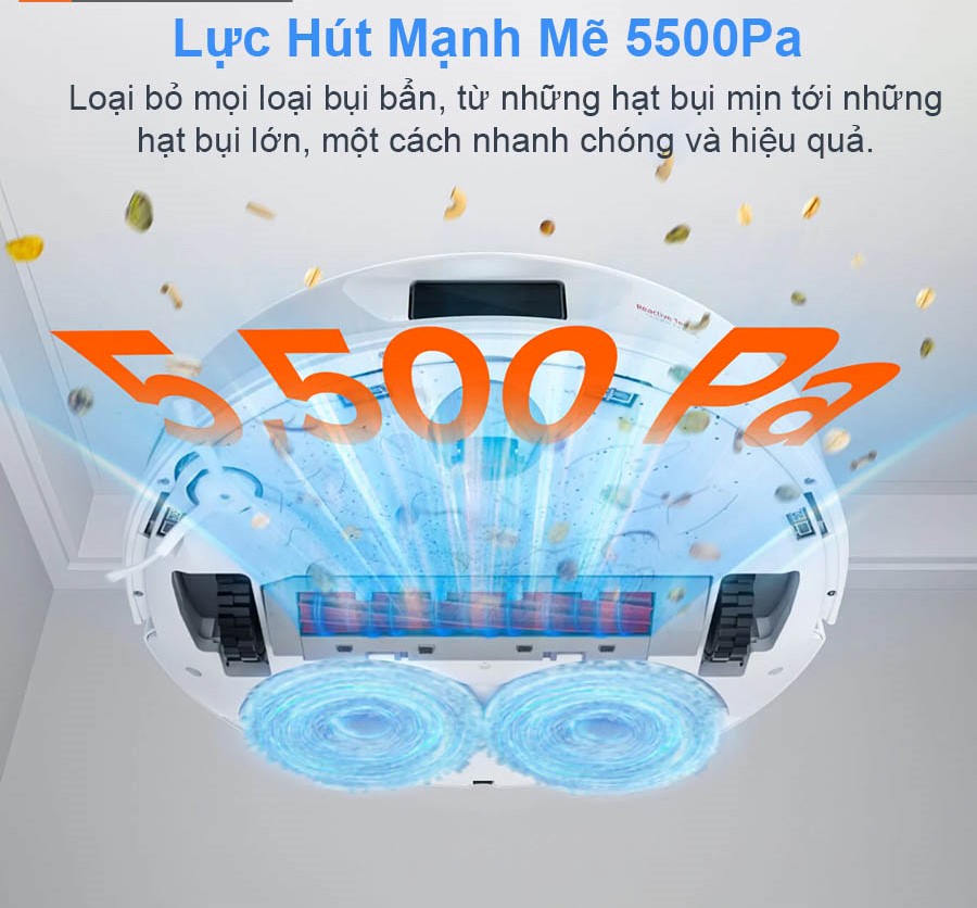 - Lực hút cực mạnh mạnh lên đến 5500Pa, hút sạch mọi loại bụi bụi