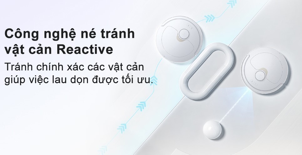 Công nghệ Reactive cho phép robot hút bụi có thể phản ứng nhanh chóng khi gặp phải các chướng ngại vật, sau đó điều chỉnh quỹ đạo di chuyển để tránh va chạm và mắc kẹt. Điều này giúp cho robot có thể duy trì quá trình làm việc liên tục và hiệu quả mà không cần sự can thiệp thủ công từ phía người dùng.