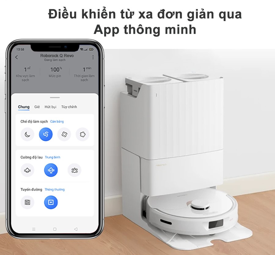 Điều khiển từ xa qua app Roborock hoặc Mi Home