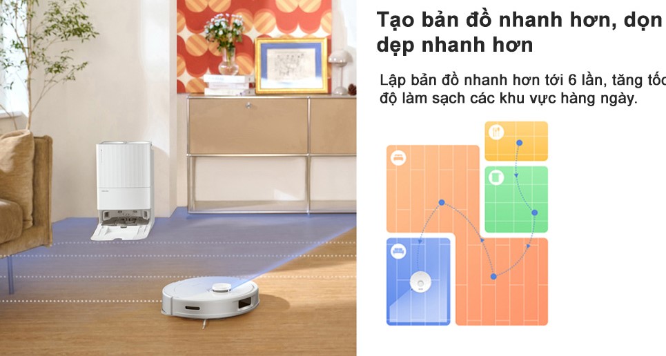 - Lập bản đồ nhanh giúp robot nhanh chóng tìm hiểu môi trường làm việc và điều chỉnh quỹ đạo di chuyển một cách hiệu quả.
