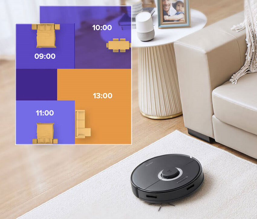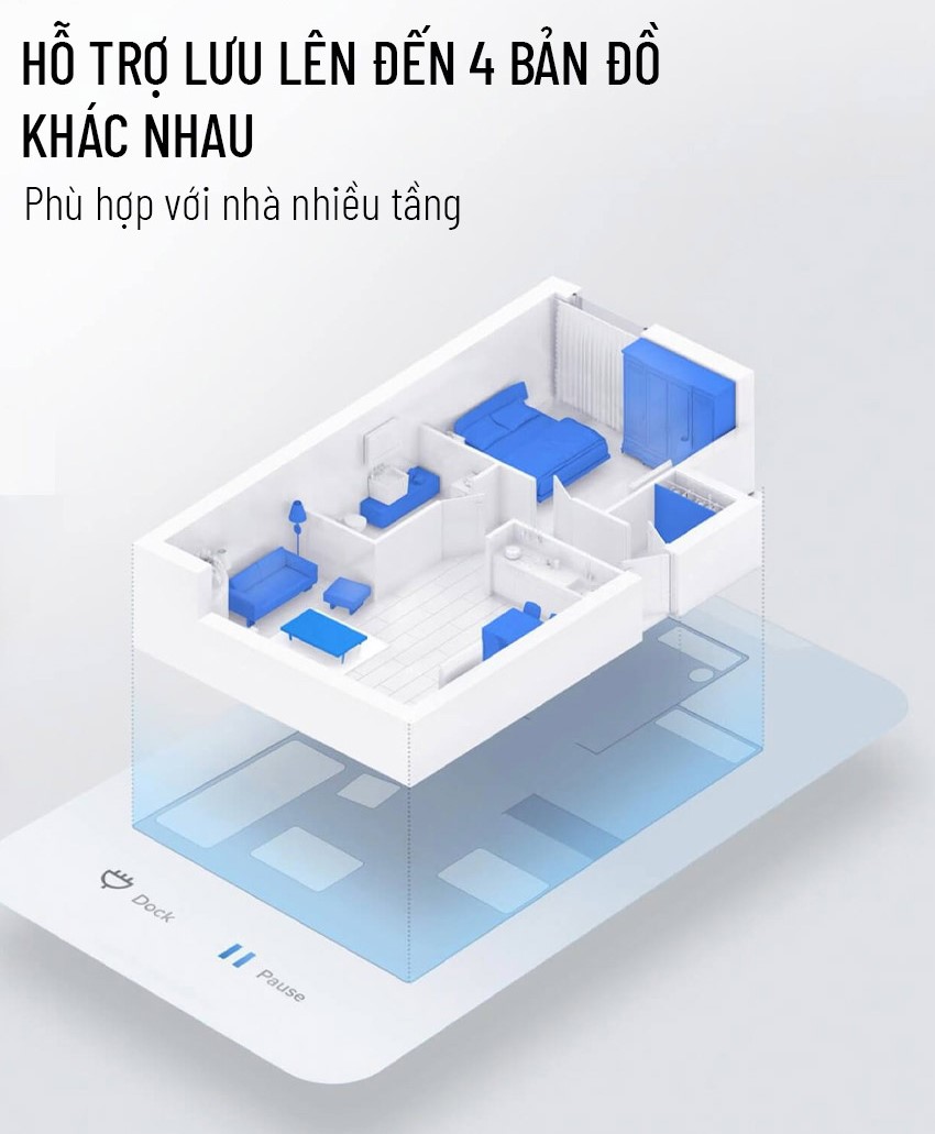 Sau khi robot lập bản đồ kế hoạch làm sạch sàn của bạn, bạn có thể hợp nhất, phân chia và đặt tên cho các tầng, các phòng khác nhau và làm sạch tùy chỉnh theo ý của bạn, Trong ứng dụng, bạn cũng có thể thiết lập lịch trình dọn dẹp và xem lịch sử dọn dẹp của robot.