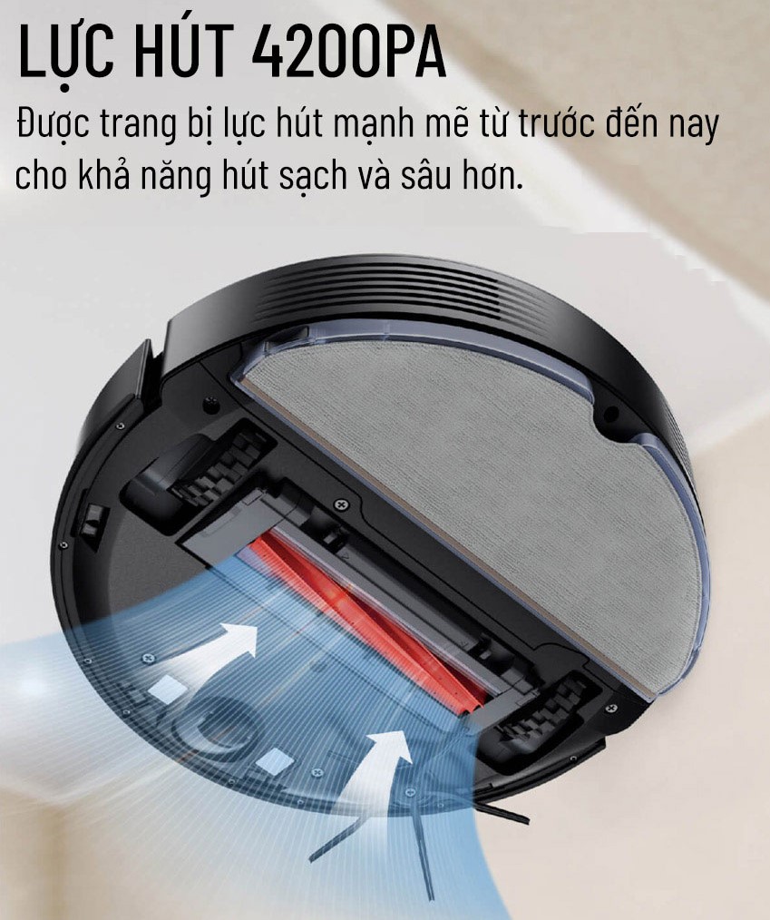 Lực hút mạnh mẽ 4200Pa, tự nhận diện mặt sàn