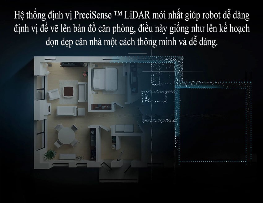 Với cảm biến PreciSense ™ LiDAR, Q7 Max thực hiện công việc dọn dẹp nhà cửa nhanh chóng và lập bản đồ ngôi nhà của bạn lên trên ứng dụng thông minh. Q7 Max lập bản đồ cấp độ chính của sàn nhà sau lần làm sạch đầu tiên khi khởi động.