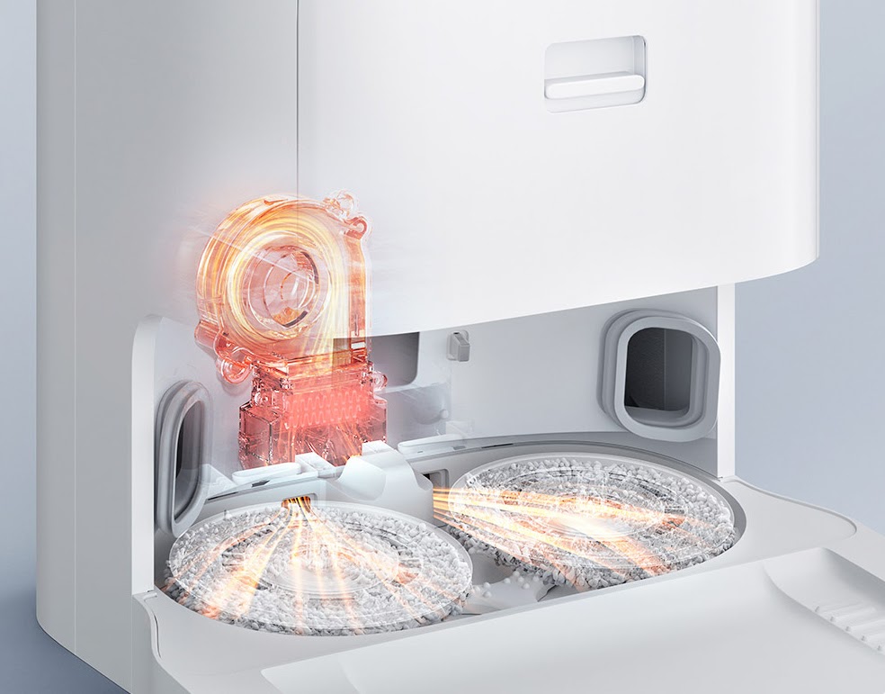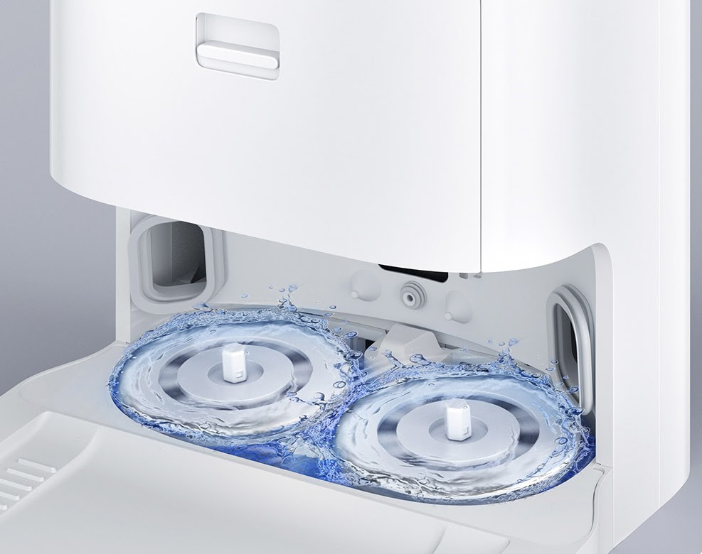 Để có thể dọn dẹp sạch sẽ và hiệu quả nhất khi hoạt động. Sau mỗi lần dọn dẹp, khăn lau sẽ được rửa tự động bằng các tia nước mạnh, đồng thời được xoay với tốc độ cao, để làm sạch các vết bẩn trên khăn lau nhà. Với lực giặt mạnh mẽ, khi sử dụng trạm vệ sinh sẽ có hiệu quả làm sạch hơn khi vệ sinh bằng tay gấp nhiều lần.
