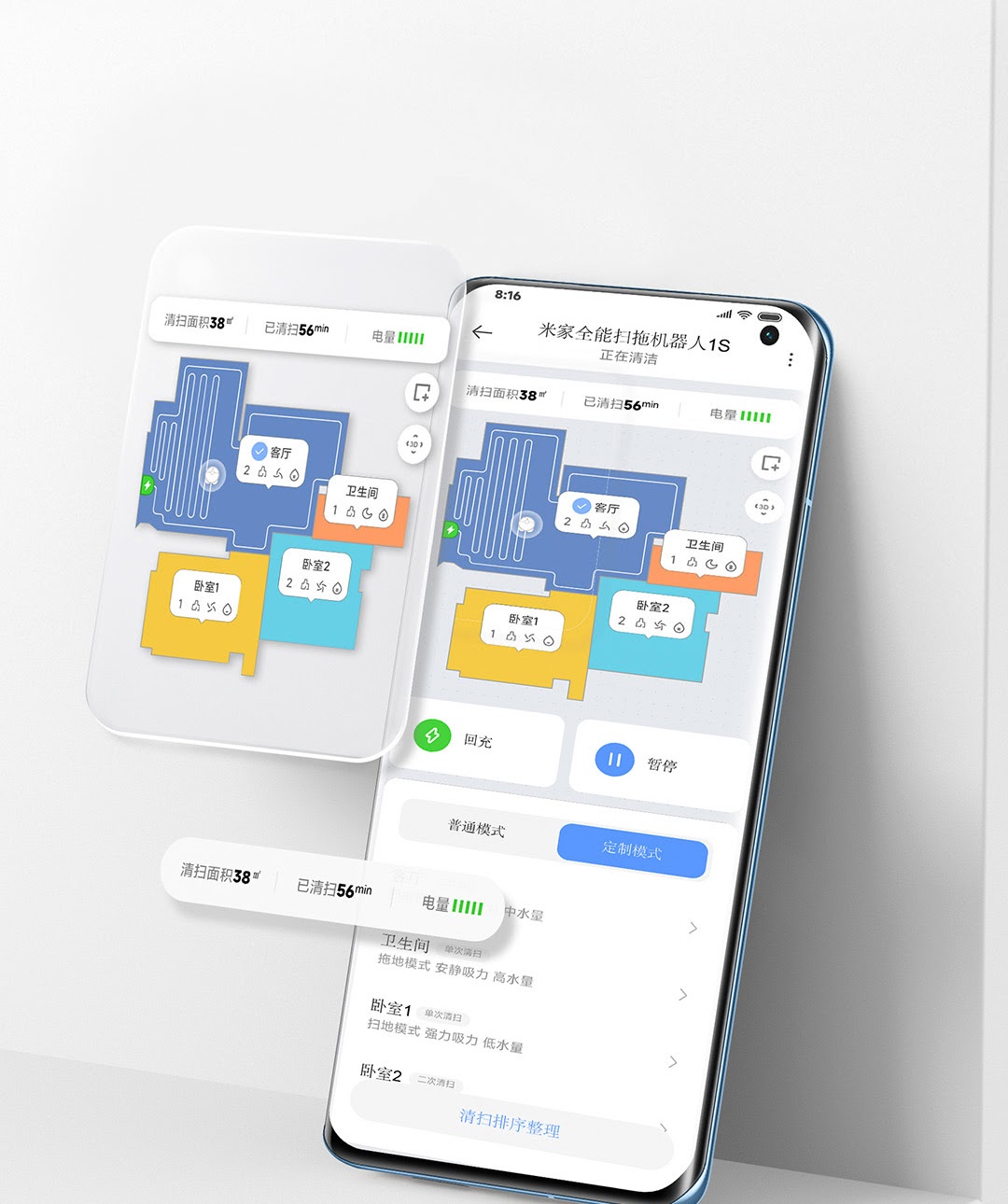 Mijia B116 được trang bị camera AI siêu cảm biến và thuật toán đồ họa trí tuệ nhân tạo, nó có thể đánh giá độc lập loại phòng dựa trên nhận dạng đồ nội thất. Đồng thời, với ứng dụng Mijia, người dùng cũng có thể cài đặt dọn dẹp từng phòng tùy chỉnh, phù hợp với từng nhu cầu sử dụng của chủ nhà.