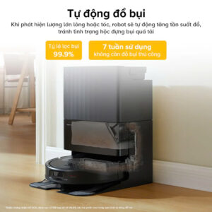 Máy tự động gom rác từ hộp rác bé ở thân máy robot lên túi chứ rác lớn hơn phía trên trạm sạc, cắt giảm vô vàn công sức bạn phải đi đổ rác.