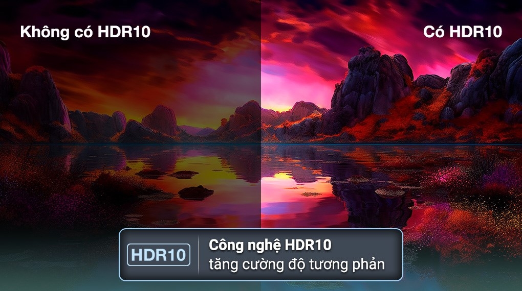 - Công nghệ HDR10 cùng HLG tăng thêm độ tương phản, độ sáng từ đó hình ảnh hiển thị sống động và chi tiết hơn.