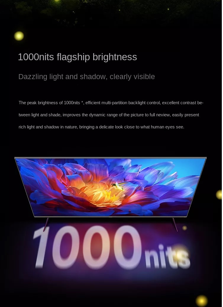 Chiếc TV thông minh mới được trang bị bộ xử lý hàng đầu A73 kết hợp lõi máy với RAM 4 GB và bộ nhớ trong 64 GB. Thiết bị chạy hệ điều hành MIUI TV và hỗ trợ điều khiển bằng giọng nói trường thông minh xa của Xiao Ai, cũng như màn hình hiển thị được hỗ trợ của các thiết bị Android, iOS, Windows, Mac.