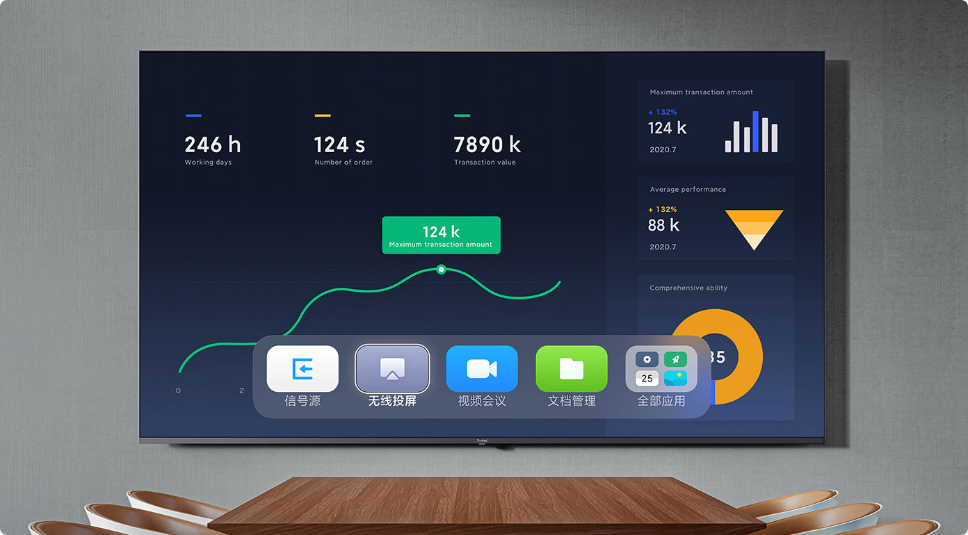 Chế độ văn phòng mới, tổng hợp các nhu cầu văn phòng một màn hình, thuần túy và không bị xáo trộn, giúp các cuộc họp tập trung và hiệu quả hơn. Bao gồm giao thức dự báo màn hình chính, không có cáp dữ liệu và nói lời tạm biệt với việc truyền tệp bận rộn.