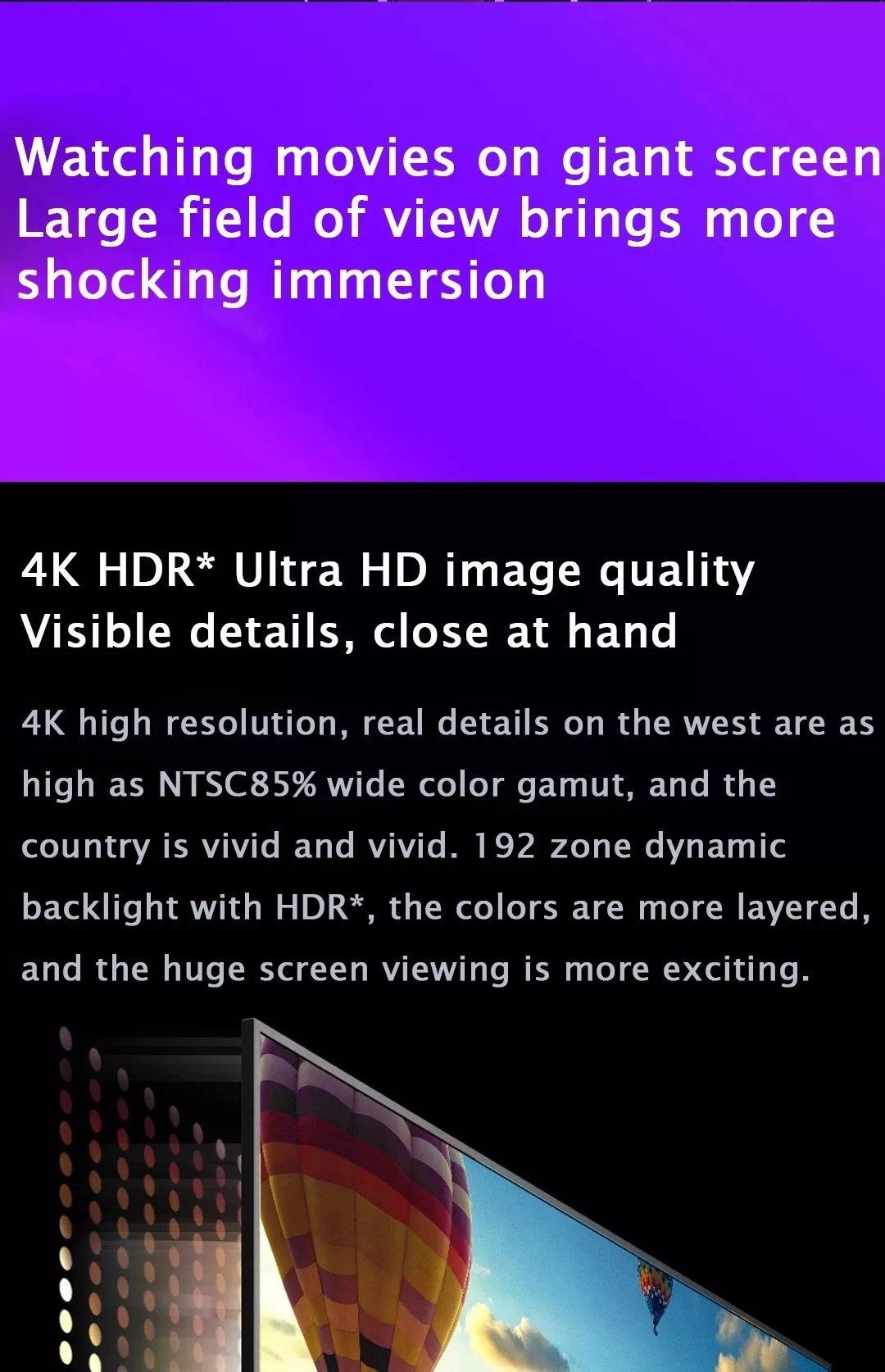 Redmi Smart TV Max 98 inch có màn hình LCD cùng độ phân giải 4K UHD hay còn gọi là độ phân giải siêu nét giúp hiển thị hình ảnh có độ nét gấp 4 lần Full HD và gấp 16 lần HD, chính vì vậy ngay lập tức những chi tiết nhỏ nhất cũng đều nổi bật – tinh tế như sợi tóc hay sợi vải trên chiếc áo.