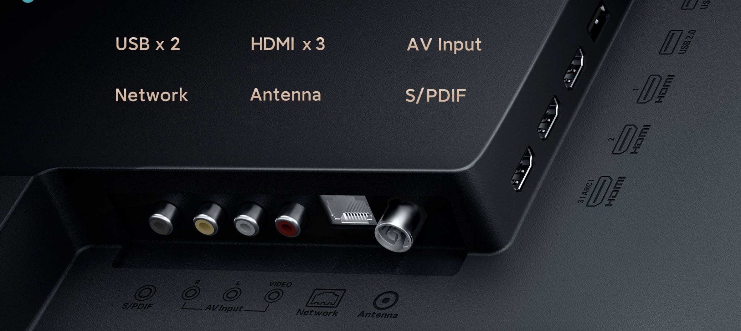 Tivi Xiaomi X55 được trang bị 3 cổng HDMI, 2 Cổng USB, Network, AV Input, Antenna, S/PDIF dễ dàng kế nối với máy tính, bảng điều khiển trò chơi và thiết bị âm thanh bên ngoài.