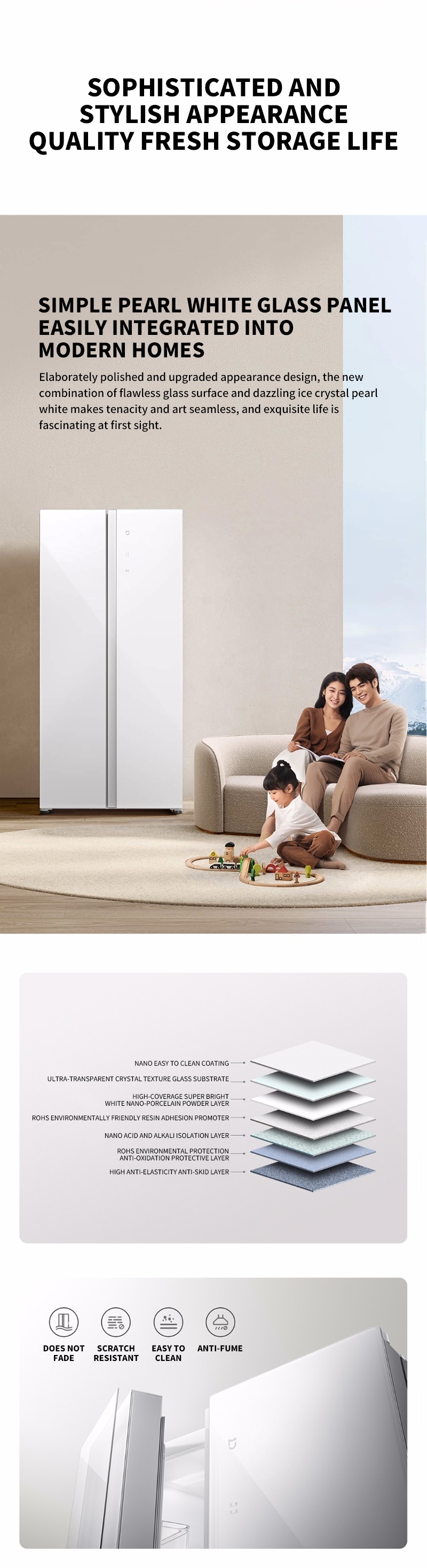 Đi vào chi tiết, phiên bản Ice Crystal Edition của tủ lạnh Mijia 610L hợp với màu trắng ngọc trai rực rỡ của “tinh thể băng”, sự kết hợp giữa sức mạnh và nghệ thuật với một giải pháp liền mạch có thể dễ dàng hòa nhập với môi trường gia đình hiện đại. Ngoài ra, chất liệu này sẽ không bị phai màu, có khả năng chống xước, dễ lau chùi và chống bám muội.