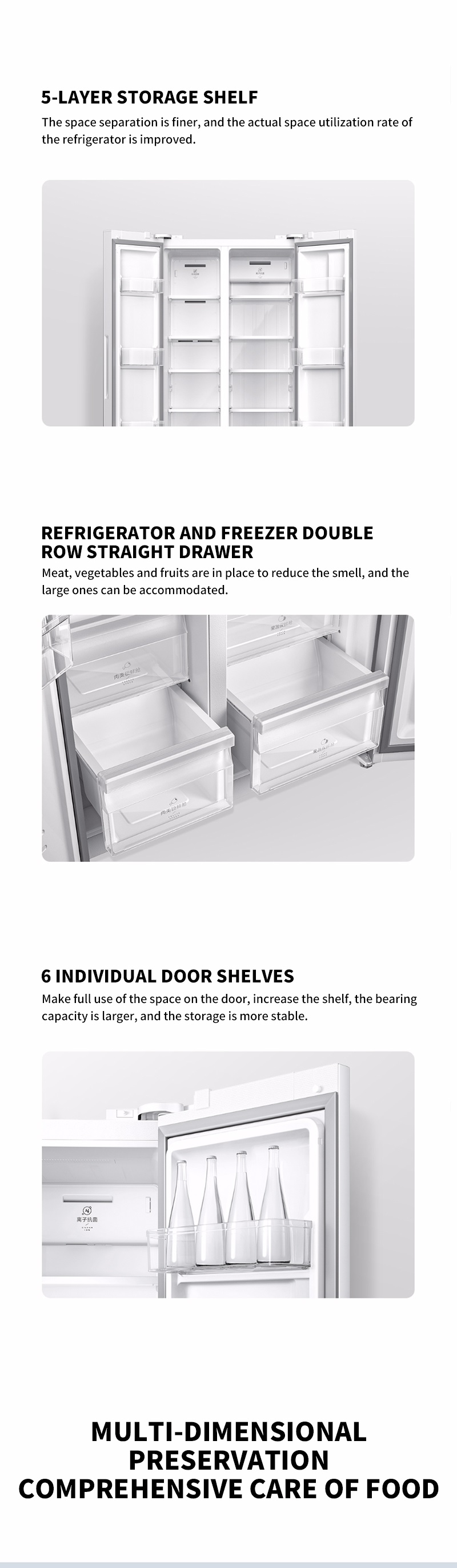 Tủ lạnh sử dụng bảng điều khiển cập nhật mới và màu trắng ngọc trai đơn giản khiến nó gần như trở thành một tác phẩm nghệ thuật tại nhà. Sản phẩm cũng áp dụng công nghệ chuyển đổi tần số kép hiệu quả cao, cho ít hơn một kilowatt điện mỗi ngày (0.89Kw/24h) và tiếng ồn khi vận hành chỉ là 36 decibel. Thêm vào đó, với dung tích 610L nó có thể đáp ứng yêu cầu của cả gia đình.