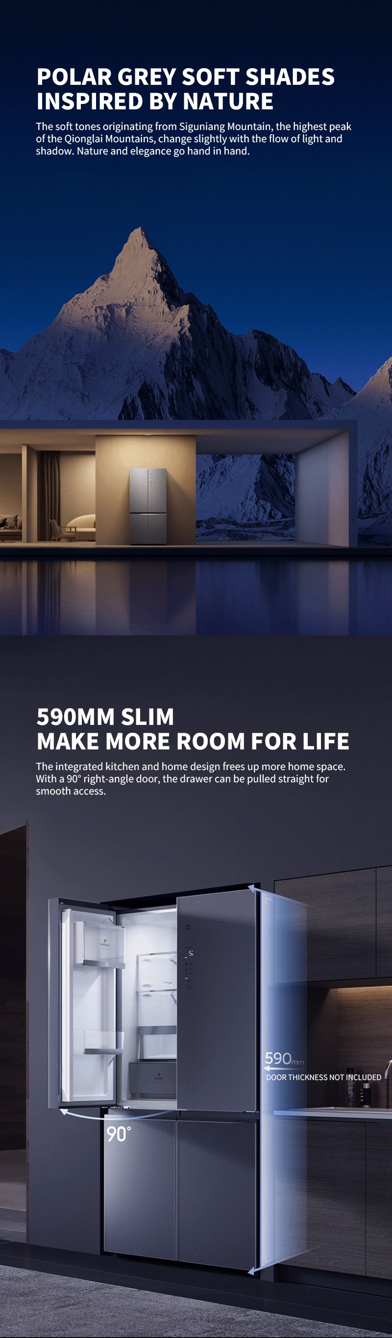 Mặc dù sở hữu dung tích lên đến 550L, tuy nhiên tủ lạnh Mijia 4 cánh lại không hề chiếm quá nhiều diện tích, 4 cánh cửa được thiết kế mở ra theo góc 90°.