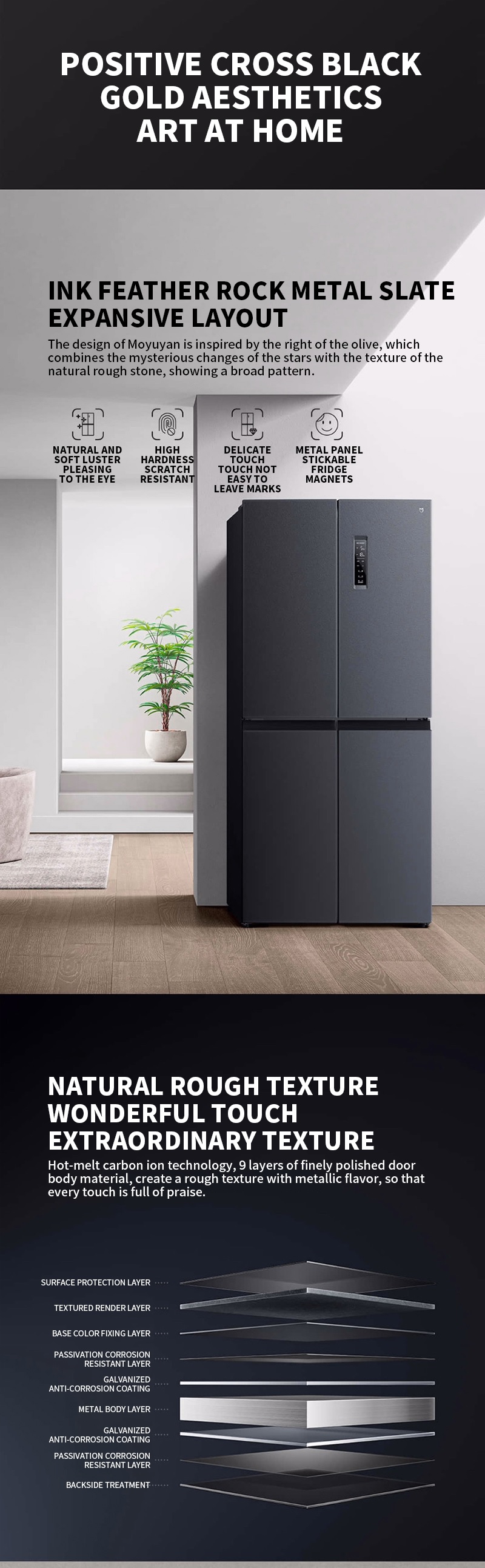 Xiaomi đã ra mắt tủ lạnh MIJIA Cross Door Refrigerator 430L tại Trung Quốc. Sản phẩm có vỏ ngoài được làm từ đá phiến kim loại Moyu với độ cứng cao và chạm khắc tinh tế.