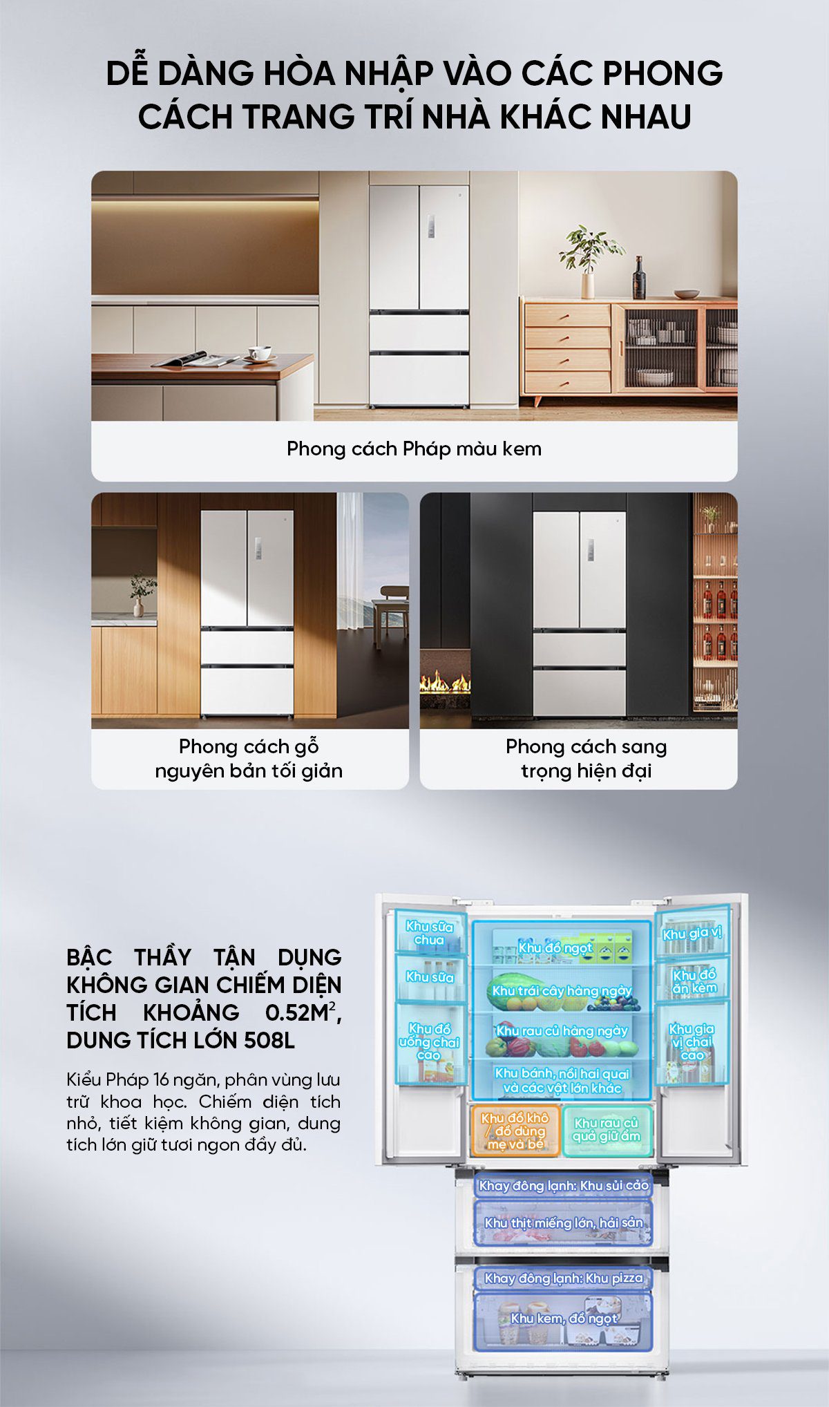 Tủ lạnh Xiaomi Mijia 508L kiểu Pháp Màu Trắng Model 2025