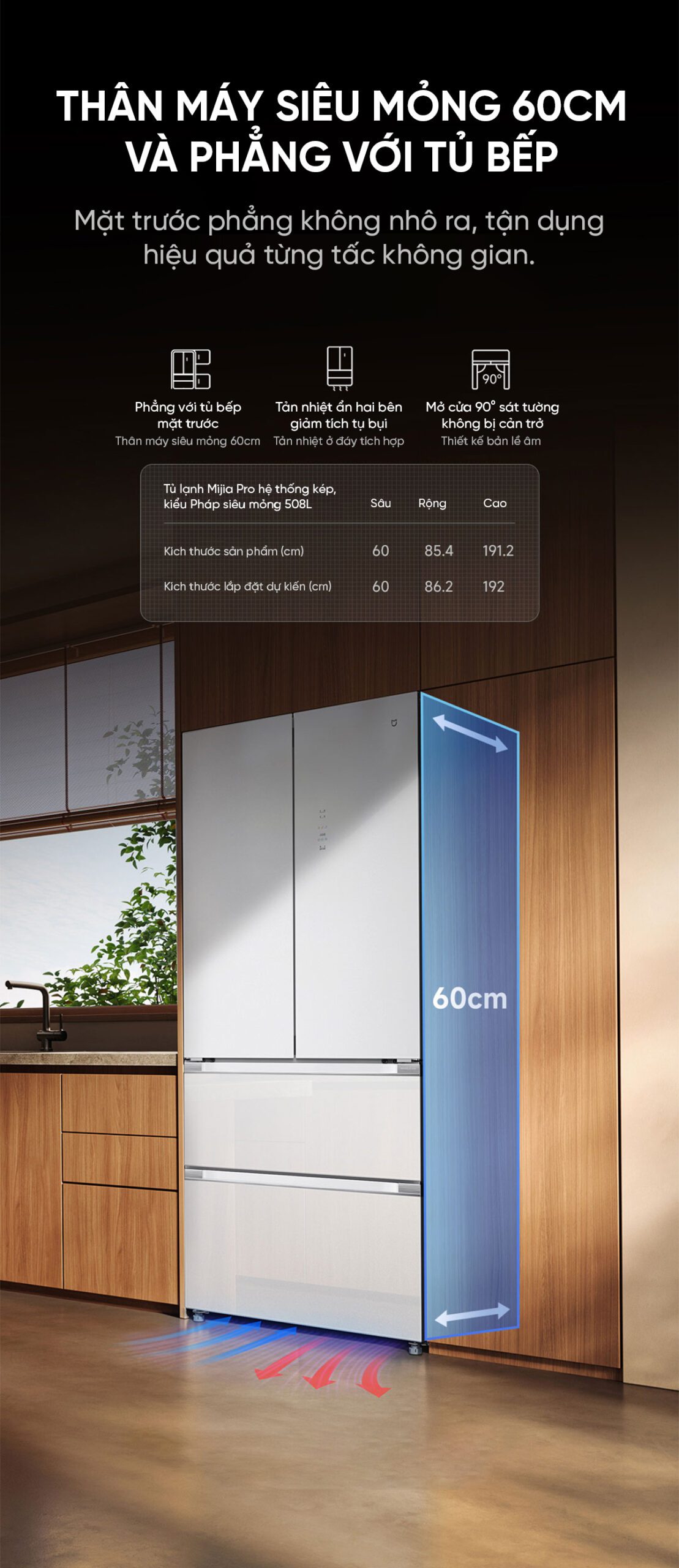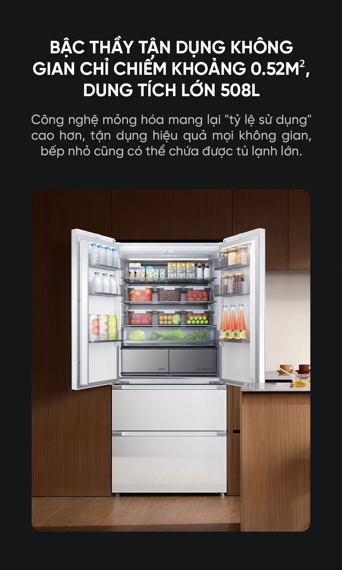 Tủ lạnh Xiaomi Mijia 508L Pro kiểu pháp , mặt kính pha lê cao cấp