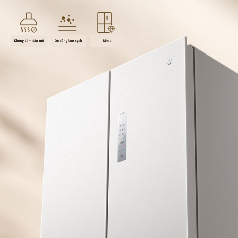 Tủ lạnh Xiaomi Mijia 518L với thiết kế màu trắng giúp tránh bám bụi và vết bẩn, không đòi hỏi việc chăm sóc cẩn thận mà vẫn giữ được vẻ đẹp trang nhã và tinh tế. Màu trắng này không chỉ tạo cảm giác sạch sẽ mà còn thêm phần hiện đại cho không gian nội thất, hoàn thiện vẻ đẹp của ngôi nhà và làm nổi bật không gian bếp.