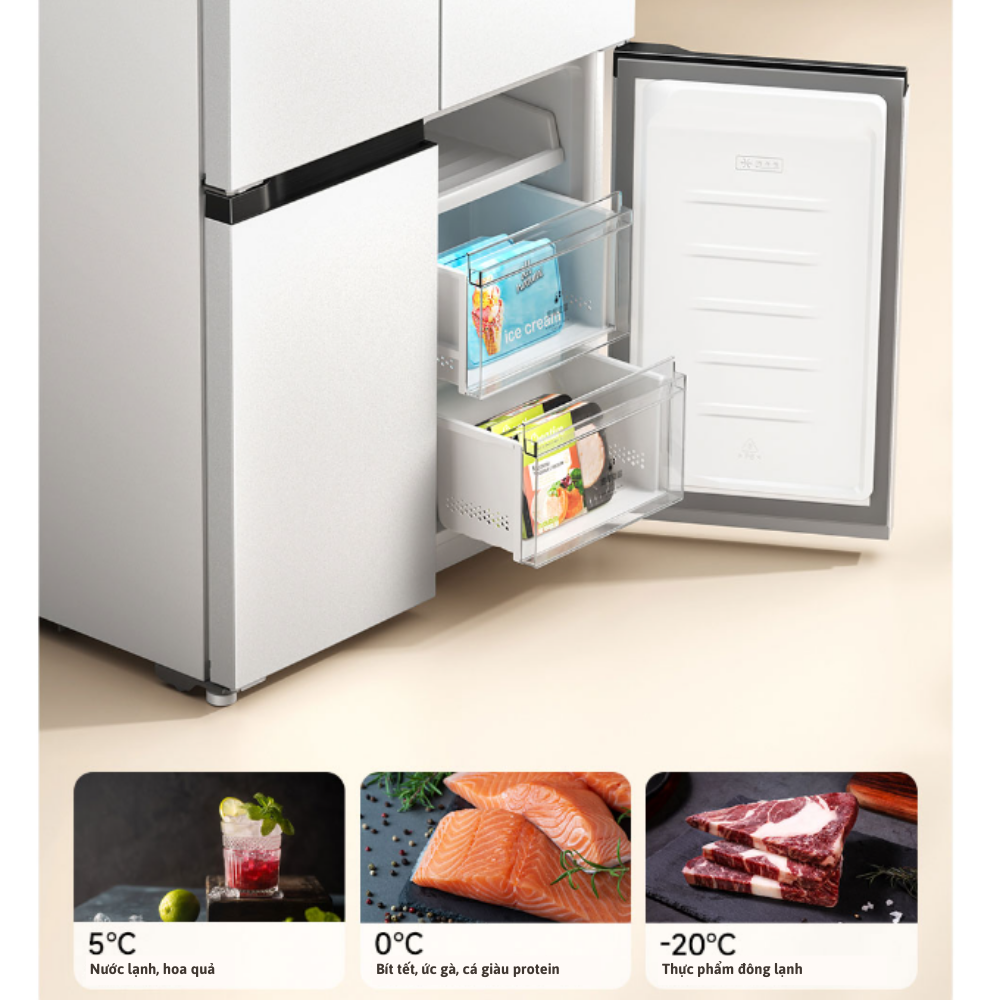 Xiaomi Mijia 518L cung cấp ngăn kéo kín với khả năng thay đổi nhiệt độ độc lập, cho phép người dùng điều chỉnh nhiệt độ tại 3 tốc độ khác nhau, tùy thuộc vào loại thực phẩm muốn bảo quản. Việc này tạo điều kiện lưu trữ và bảo quản thực phẩm cho mẹ và bé một cách riêng biệt, đáp ứng nhu cầu khác nhau của từng loại thực phẩm và giúp duy trì chất lượng tốt nhất cho từng loại thực phẩm cần thiết cho mẹ và bé.