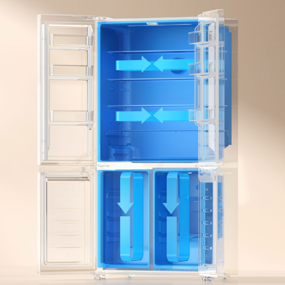 Công nghệ tuần hoàn làm mát bằng không khí 360 độ trong tủ lạnh Xiaomi Mijia 518L không chỉ giúp làm mát nhanh đến 6kg/12h mà còn ngăn chặn hiện tượng đóng tuyết, tránh thực phẩm bị dính và thuận tiện khi lấy ra.