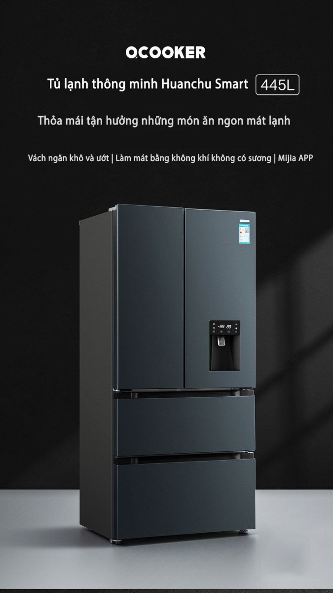 Tủ lạnh kiểu pháp Xiaomi ocooker 445L 4 Cửa có thể nói là một ví dụ điển hình nhất cho sự kết hợp hoàn hảo giữa các thiết bị công nghệ thông minh. Chính vì vậy  sẽ là lựa chọn tuyệt vời vừa tiết kiệm diện tích vừa mang đến sự tiện nghi và hiện đại cho không gian của mỗi gia đình. Quan trọng hơn cả chúng ta sẽ tiết kiệm được cơ số tiền khi sở hữu Tủ lạnh kiểu pháp Xiaomi ocooker 445L 4 Cửa này.