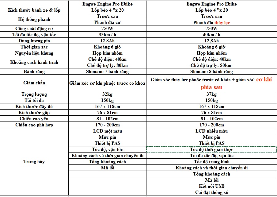 Engwe EP-2 Pro và Engwe Engine Pro: So sánh thông số kỹ thuật