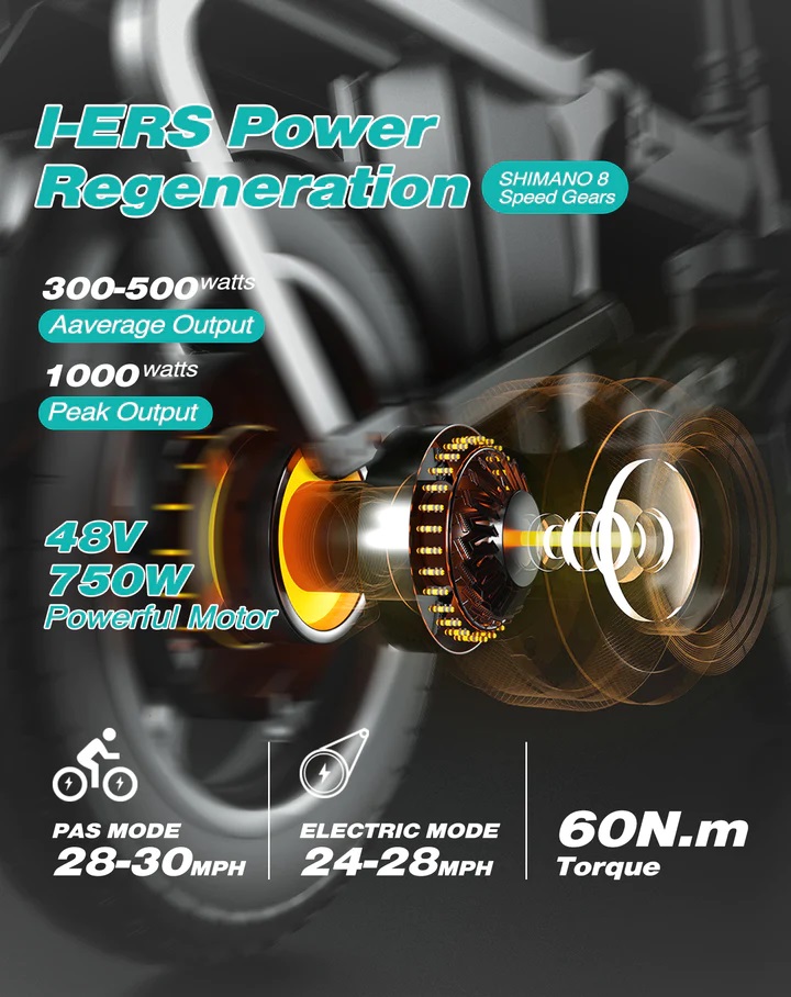 Bộ truyền động Shimano 8 cấp và 3 chế độ lái xe: thuần điện, trợ lực điện và đạp chân, phù hợp với mọi yêu cầu lái xe của bạn.