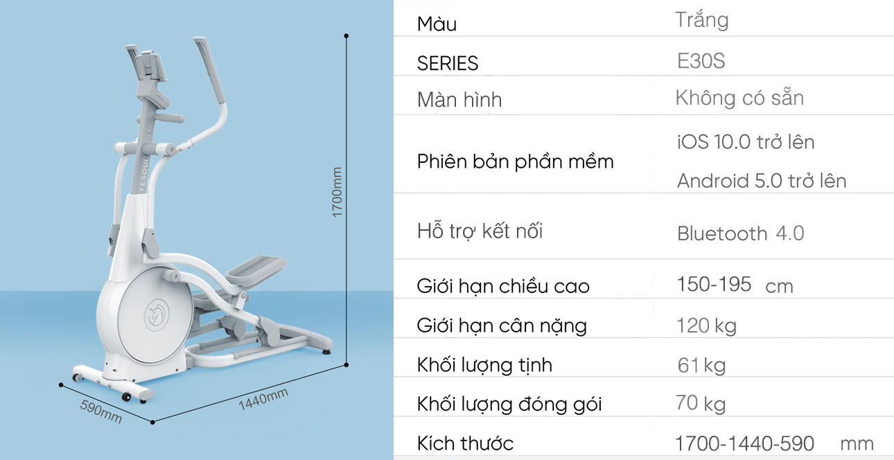 Máy tập thể dục toàn thân Yesoul E30S là thiết bị tập thể dục lý tưởng để đưa việc tập luyện của bạn lên một tầm cao mới. Nó mang lại một buổi tập luyện suôn sẻ và thoải mái với vẻ ngoài tương lai. Máy tập Elip Yesoul E30S này có khả năng điều chỉnh điện trở từ tính mang tính cách mạng sẽ giúp bạn thay đổi cường độ tập luyện để phù hợp với yêu cầu cá nhân của bạn. Chuyển động hình elip sẽ giúp bạn săn chắc cánh tay, eo và chân đồng thời khuyến khích nhịp tim của bạn tăng lên. Nó cũng có bánh xe lăn để di chuyển trong nhà của bạn.