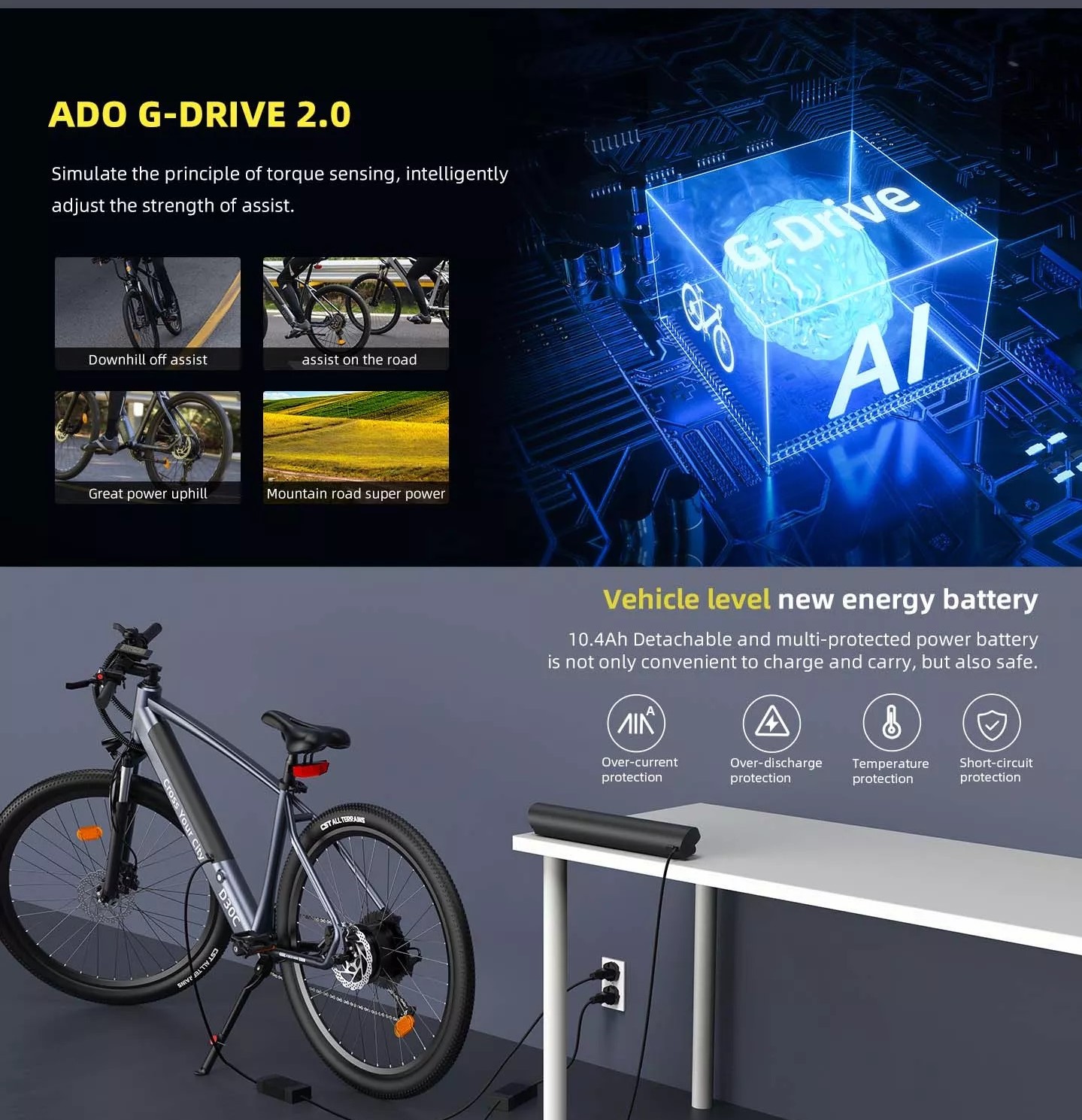 Trang bị hệ thống điều khiển AI thông minh Ado G-Driver 2.0, dựa theo nguyên lý cảm biến mô men xoắn, tự động điều chỉnh trợ lực theo lực đạp