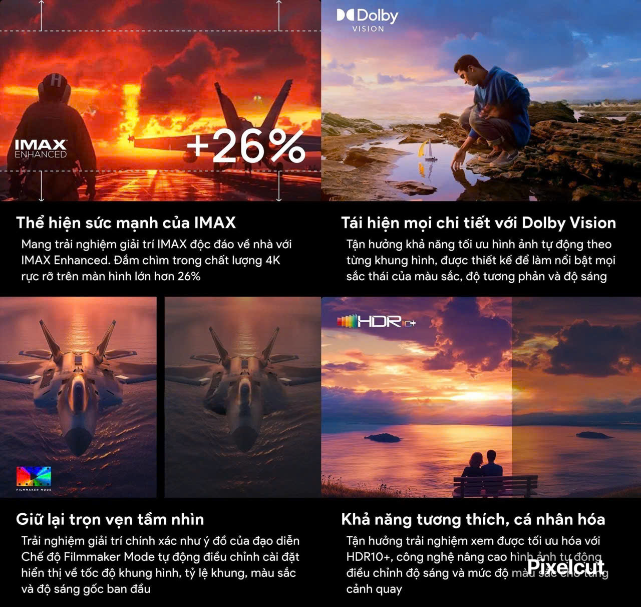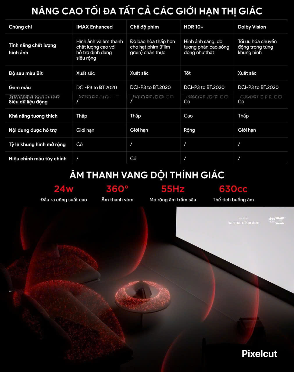 - Đặc điểm công nghệ quốc tế: Chứng nhận IMAX Enhanced, Chứng nhận Dolby Vision, Chứng nhận SGS ΔE<8
