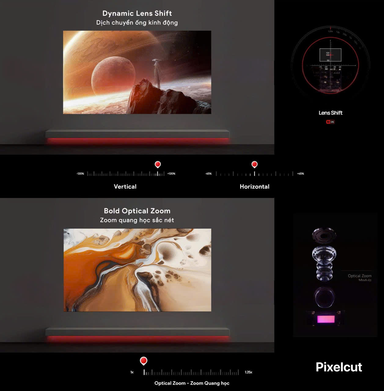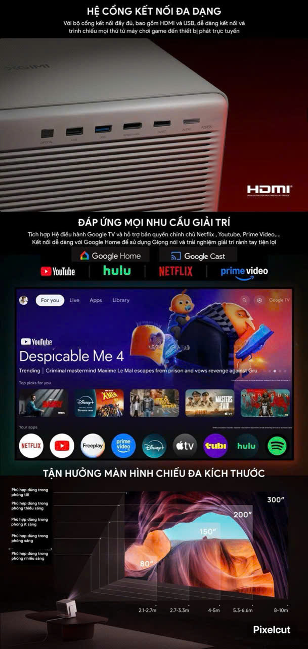 - Kích thước chiếu 40'' - 300'' (khuyến nghị 60 - 150")